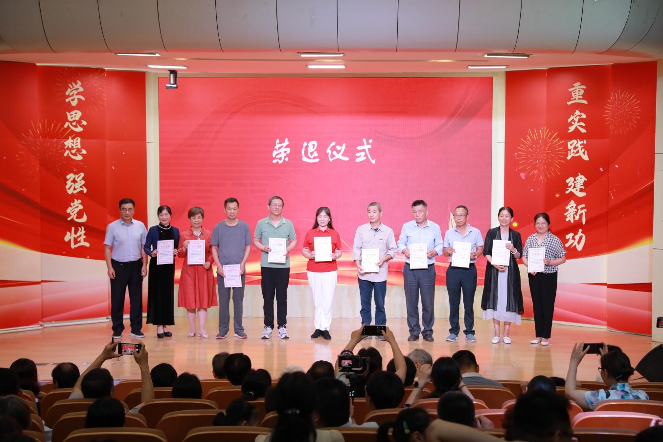 郑健主持光荣在党50年纪念章颁发仪式暨荣退仪式,并为荣退教师代表颁发荣退证书。他希望大家自觉做坚定理想信念的实践者和传承者,将人生理想、家庭幸福融入学校各项事业蓬勃发展中,大力弘扬劳模精神、劳动精神、工匠精神;主动对标新形势新要求,以爱岗敬业、争创一流、甘于奉献、追求卓越的精神姿态勇挑责任重担。