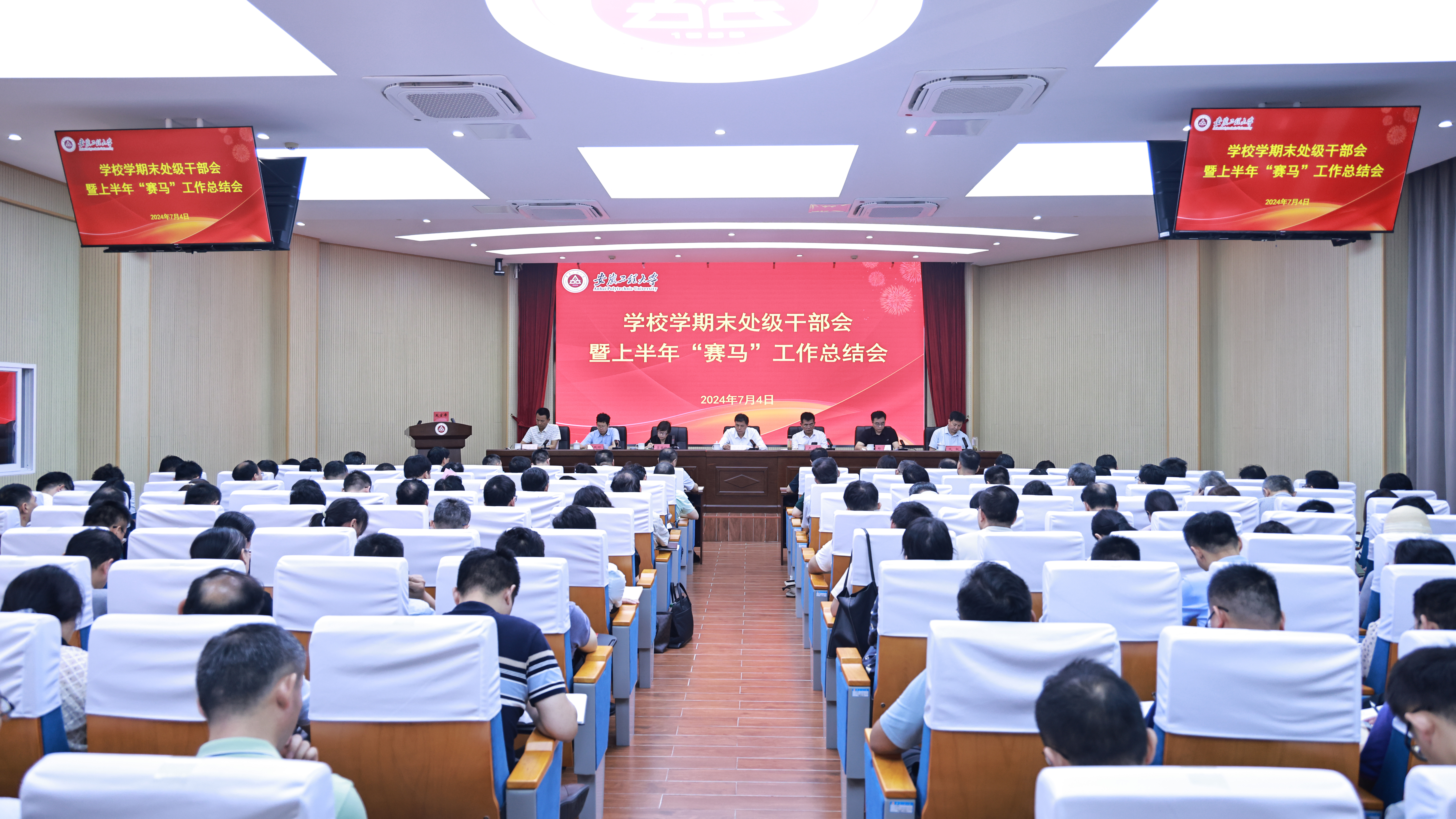 本网讯7月4日,学校在A座104会议室召开学期末处级干部会暨上半年“赛马”工作总结会,校领导张志宏、卢平、苏国红、郑健、程双四、凤权、高彦峰出席会议,全体处级干部参加会议。会议由校党委副书记苏国红主持。