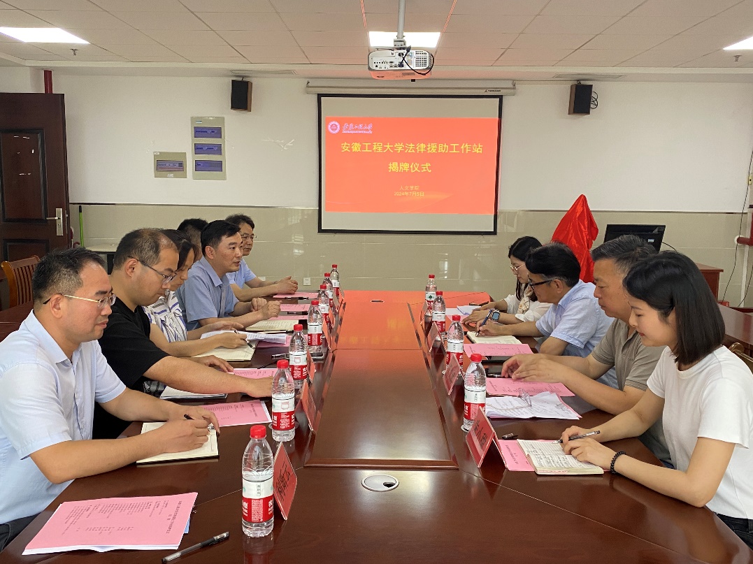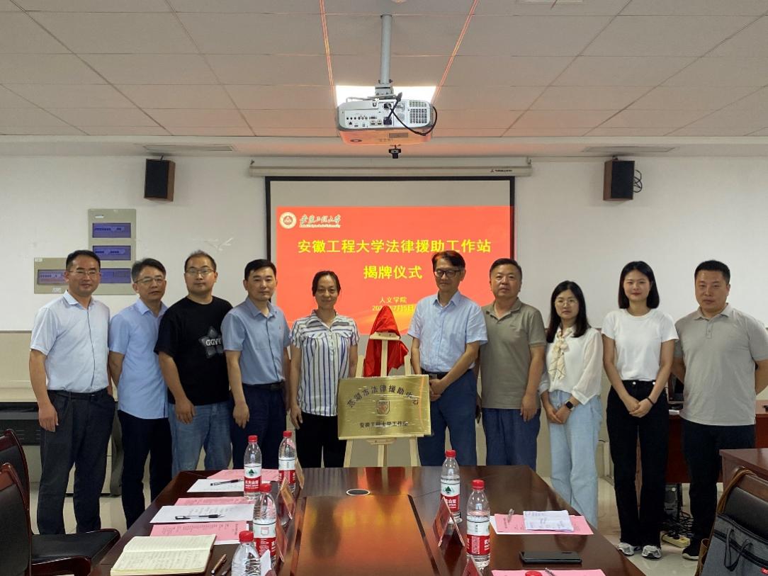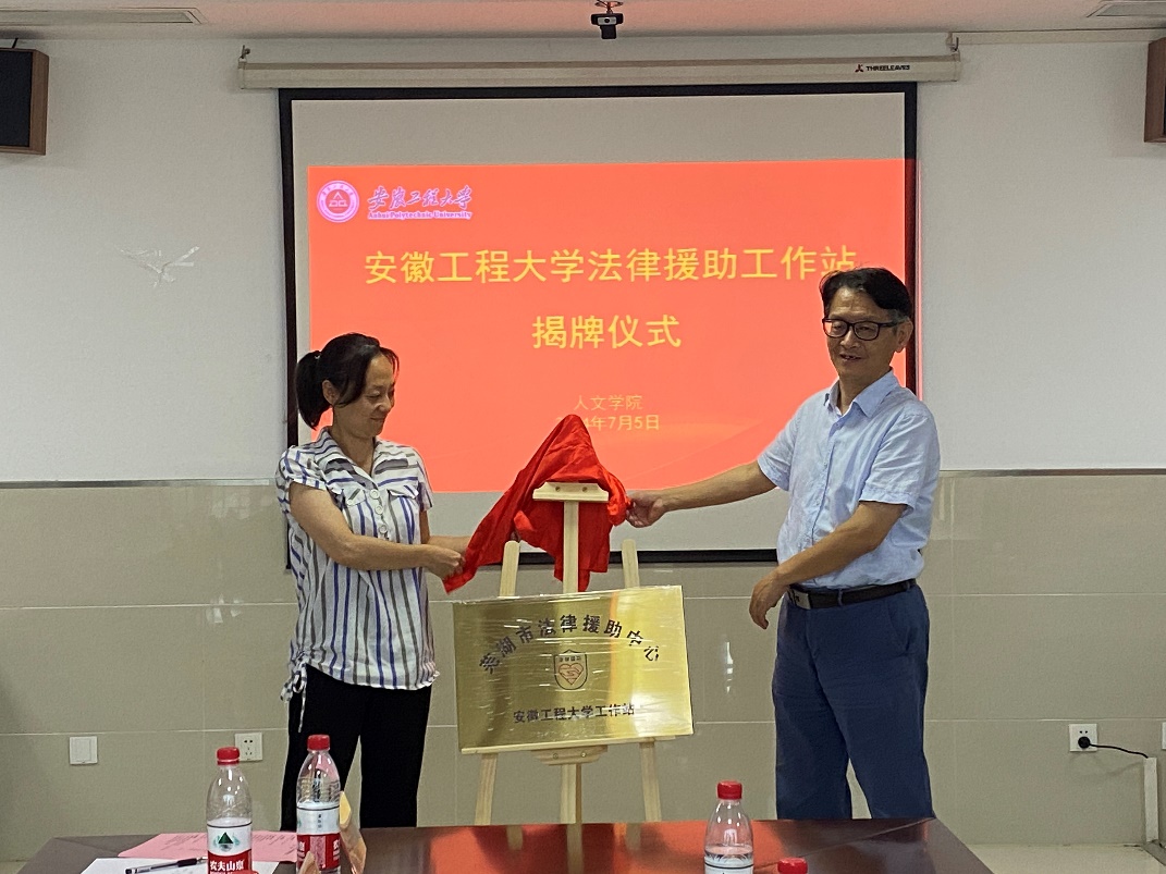 本网讯为深入学习贯彻习近平法治思想,进一步提升法学专业人才培养质量,促进校地合作协同育人,7月5日,人文学院与芜湖市司法局举行“法律援助工作站”揭牌仪式。芜湖市司法局四级调研员季兵、法律援助中心主任王义武、相关工作人员,人文学院党委副书记余本祺,副院长张勇,校团委挂职副书记姚伟波、学院教师代表参加揭牌仪式。仪式由张勇主持。