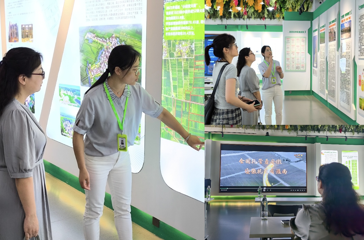 在安徽农管家农业科技发展服务股份有限公司,孙德茹一行先后参观了企业数据运行平台、农业生产大托管大讲堂、观看了企业宣传片,深入了解企业的业务范畴,科技助农发展前景,企业人才需求和招聘条件方面的情况。