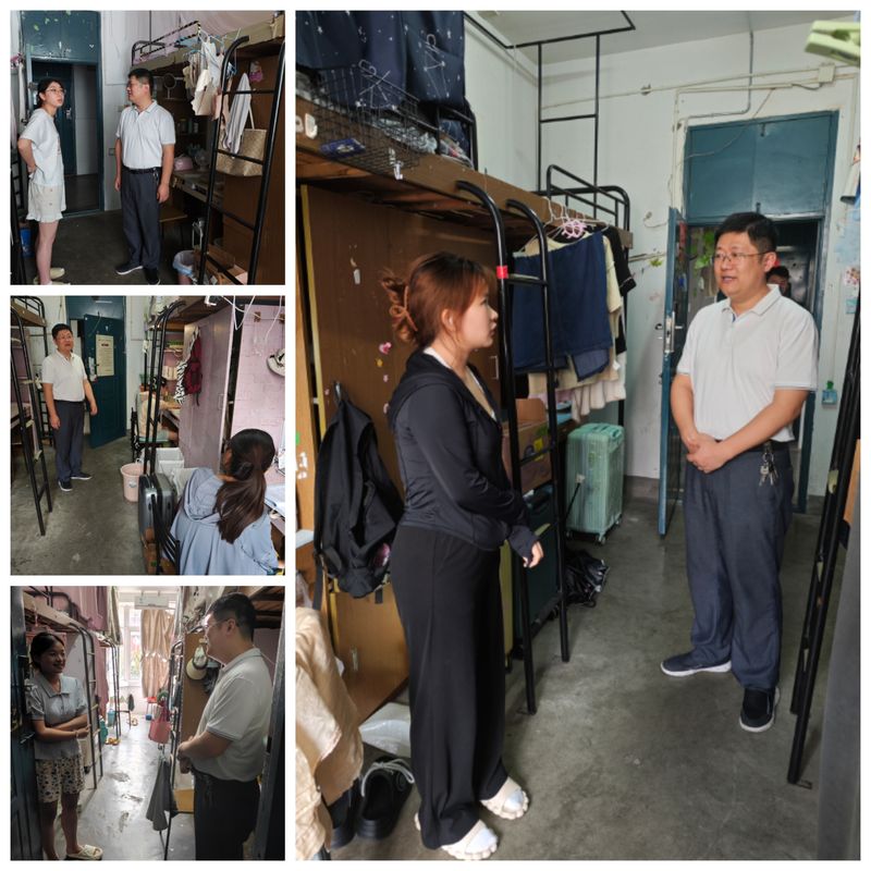 本网讯为进一步加强暑期留校学生的安全教育管理工作,了解和掌握留校学生的思想动态、学习情况和生活需求,7月18日,经济与管理学院党委副书记刘海涛带领21级辅导员深入寝室,开展走访及安全检查工作。