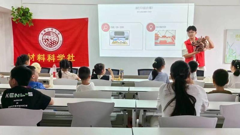本网讯为进一步丰富六郎镇暑期文明实践志愿活动,提高青少年儿童的科学知识水平,激发学习科学、热爱科学的热情,7月18日,材料科学与工程学院含笑花“公益N+1”困境儿童帮扶团队、真“材”实“料”乡村振兴实践团队、材料科学社联合六郎镇开展“七彩假期——3D打印童趣科普”暑期社会实践活动。
