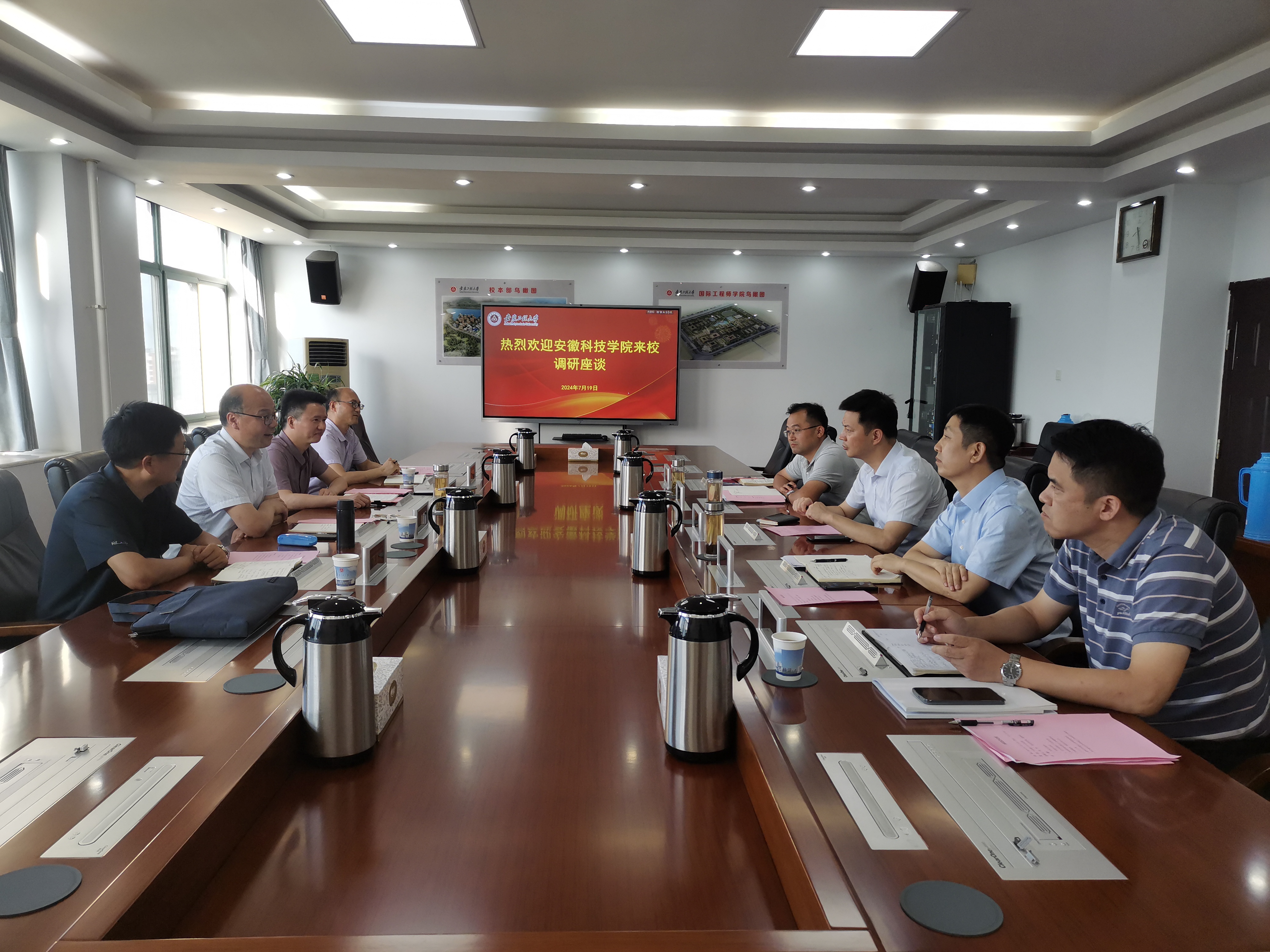 本网讯7月19日,安徽科技学院党委委员、副校长王孝义一行来校调研座谈。校党委常委、副校长凤权出席座谈会,人事处、学科办负责同志参加座谈。座谈会由凤权主持。