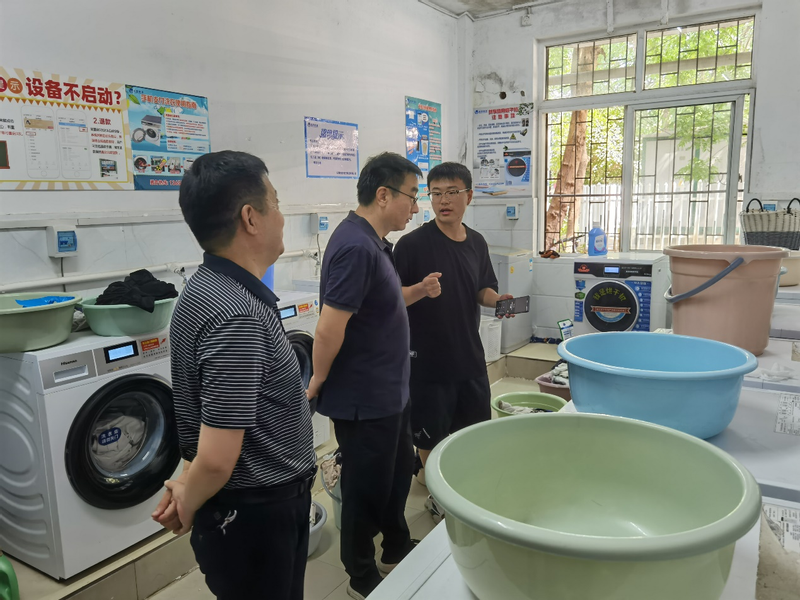 在男生宿舍,郑健与留校学生亲切交流,“洗衣服费用贵不贵?食堂吃的是否习惯?学习压力大不大?学习效果怎么样?”郑健详细地了解了留校学生的学习、生活、服务保障等方面的情况,鼓励他们保持良好的学习状态,不断提升自己,为了理想不懈努力。他要求学院和部门通过多种渠道准确掌握了解留校学生的诉求,克服困难,及时解决。郑健说,希望同学们遇到困难时能及时向学院和有关部门反映,学校一定会及时协调解决,为大家暑期生活学习做好服务保障。同时,他叮嘱同学们注意用电、交通、饮食、防溺水等方面安全,做好防暑降温,多与家人沟通联系。