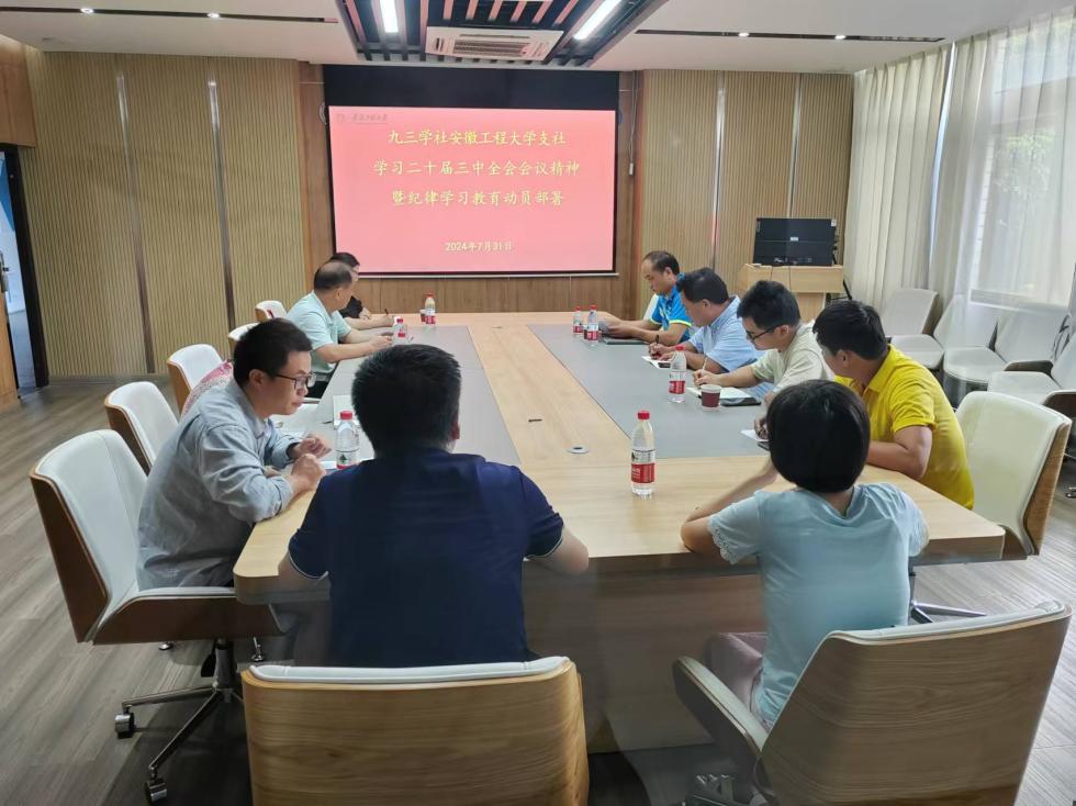本网讯7月31日,九三学社RayBetApp官网下载 支社在行政楼A313会议室召开学习贯彻中共二十届三中全会精神和纪律学习教育动员部署会议。支社班子成员及部分在芜社员同志参加会议,会议由支社主委葛愿同志主持。