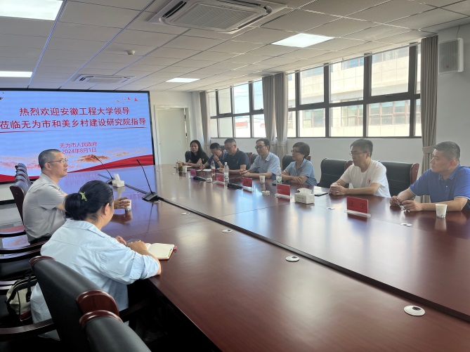 本网讯为进一步推进无为市和美乡村建设项目,8月1日,校党委副书记苏国红率人文学院相关负责人及相关专业教师赴无为市和美乡村建设研究院调研交流,无为市农业农村局局长曹昌芹陪同调研。