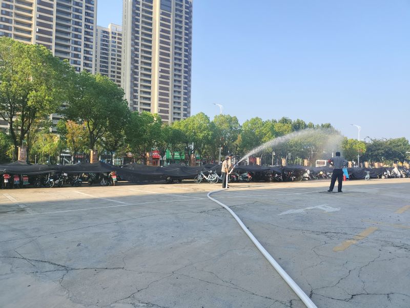 本网讯根据安徽省教育厅《关于做好学校暑期安全工作的通知》要求,结合近期持续高温天气情况,8月9日,保卫处针对南大门停车场停放的700余辆电动自行车开展灭火模拟演练。保卫处工作人员、安保人员和物业公司共20余人参与。