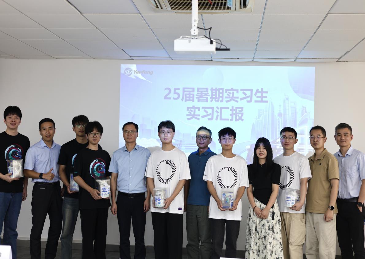 汇报会上,学生们通过PPT、视频、创作的实物展示等多种形式,逐次汇报了参与的课题、完成的项目、遇到的挑战以及解决的方法,并分享了实习过程中的成长与体会。公司负责人对学生们的综合表现给予了高度评价,希望继续加强与学校的合作,共同培育优秀人才。秦广虎代表学院感谢公司为学生提供的宝贵实践学习机会,并介绍了学院2025届毕业生生源情况,希望校企双方在大学生实习、就业、产学研等方面继续加强合作。