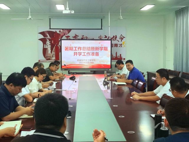 本网讯8月29日,机械与汽车工程学院在国际工程师学院校区实训楼3-1-204会议室召开暑期工作总结暨新学期工作部署会,学院班子成员、各系部(中心)主任、党支部书记、辅导员代表参会。会议由王建平院长主持。