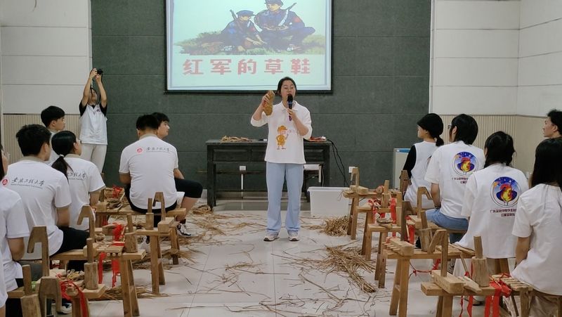 “纸上得来终觉浅,得知此事要躬行。”为深刻感受当年红军的艰苦生活,实践团成员参与了“红军的一天”体验教学。踏上崎岖的山路,进行了一场急行军,重走红军挑粮小道。在3.5公里的山路急行中,汗水浸湿了衣衫,疲惫挑战着极限。在井冈山老乡家里,实践团成员开展自制红军餐的体验活动,在老乡的指导下,团结协作、分工明确,生火、洗菜、做饭,有条不紊地体验了一次制作红军餐。夜幕降临,实践团围坐在教室里,学习编织红军草鞋,唱响红色歌曲,分享心得体会。在长途跋涉与自力更生的生活实践中,这份纯真的革命情怀在每个人心中久久回荡。