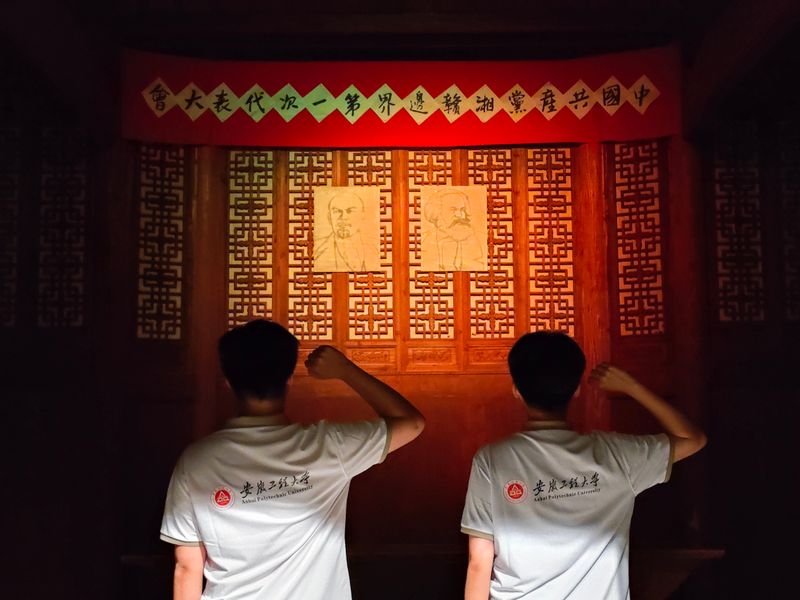 “脚踏红土地,心怀赤子情。”在现场专题教学中,实践团踏上了寻访革命足迹的征途,穿梭于井冈山的崇山峻岭,参观了黄洋界哨口、八角楼、大井旧居、小井红军医院等革命旧址。每一处遗址,都承载着厚重的历史记忆;每一块碑文,都诉说着英雄的故事。在井冈山革命烈士陵园,实践团向长眠于此的烈士敬献花圈并进行默哀仪式,重温入团誓词,感悟井冈山精神,坚定革命理想信念。在八角楼下,实践团认真学习了《中国的红色政权为什么能够存在?》《井冈山的斗争》两篇光辉著作的创作历史。在小井红军医院旧址,实践团向那些为了革命事业献出宝贵生命的无名英雄默默致敬。在井冈山革命博物馆,实践团深刻学习并领会了井冈山革命根据地的创立、发展、恢复,坚持井冈山的斗争、弘扬井冈山精神的重要意义。