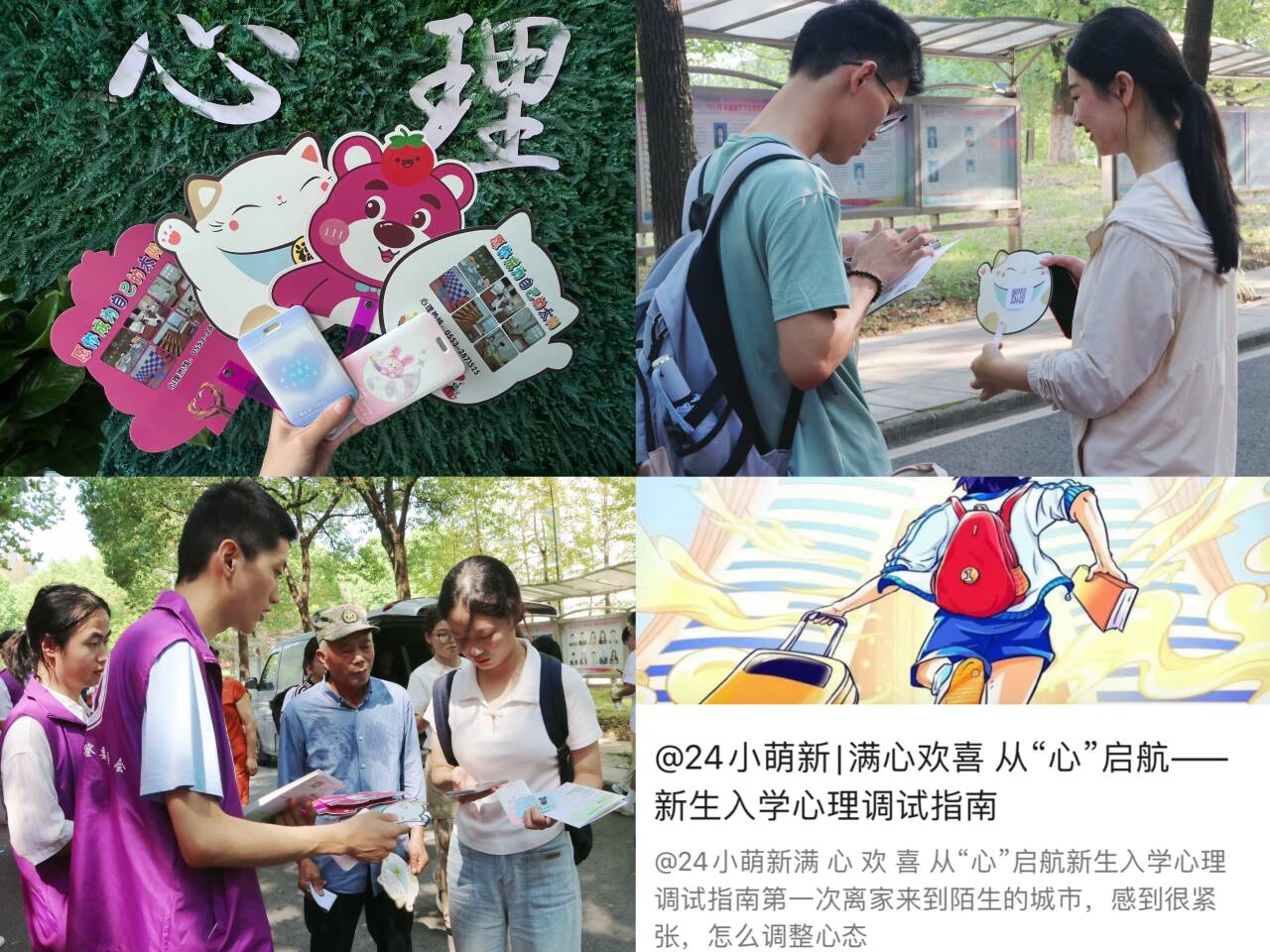 新相遇,心相愈。每位大一新生即将开启多彩绚烂的新篇章,书写属于自己的精彩。心理健康教育中心将持续以饱满的热情为全体学生做好心理服务,立足“乐”起来,不断探索、力求创新,持续推出新生入学适应性讲座、心理健康量表测试、新生个人成长信息收集、心理适应性访谈等系列入学教育活动,助力2024级新生勇敢地追逐梦想,用青春之笔绘制出属于自己的璀璨星图。