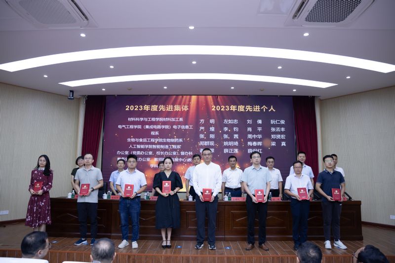 光荣从教三十年教师代表材料科学与工程学院朱先琦用“自豪”“责任”“感恩”三个关键词深情回顾了自己的三十年从教生涯,勉励新进教师积极投入“三全六专”育人实践”,上好每一节课,教好每一个学生。2024年安徽省优秀教师人工智能学院方明表示要以年轻的心态、进取的姿态矢志前行,增强自我净化能力、锤炼坚定正确的政治品格,大力弘扬教育家精神、终身学习练好内功,深化产教融合、做好校企合作的高效“黏合剂”。新进高层次人才代表纺织服装学院吴波表示学校产教融合、支持教师服务产业发展的机制体制格局超前,作为安徽省首批科技副总,将以企业需求为牵引,搭建学术界和产业界的信息交流平台,把最前沿的技术和成果融入到学生培养中,努力为地方产业培养更多专门人才。新进教师代表生物与食品工程学院徐一达感谢学校、学院为青年教师提供的良好平台和发展支持,分享了国家自然基金青年项目的申报过程和经验,表示要结合学院特色和自身所长,从实际生产挖掘课题需求,让科研成果服务实际生产。