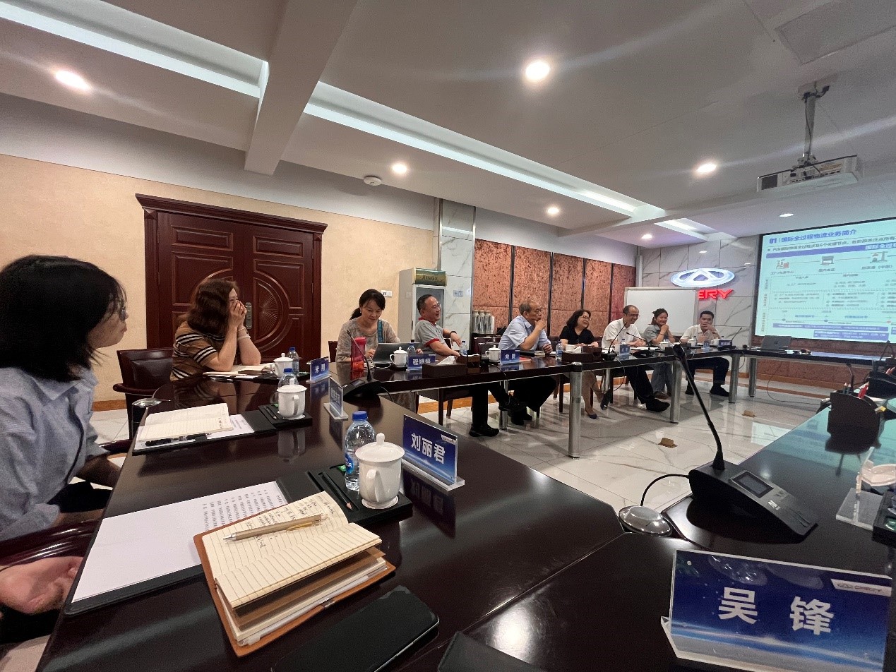 在调研中,龚本刚一行与企业负责人进行了深入的沟通交流,介绍了学院MBA招生情况、物流产业研究院已经开展的相关工作。奇瑞国际业务事业部物流总监李杰斌等介绍了国际物流中的相关痛点问题。