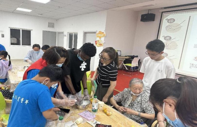 本网讯9月16日,国际教育学院的留学生们与芜湖市弋矶山街道春江社区儿童义工团一同走进滨江阳光养老院方特分院,与老人们欢聚一堂,共同制作手工冰皮月饼,为养老院增添了浓浓的节日氛围。