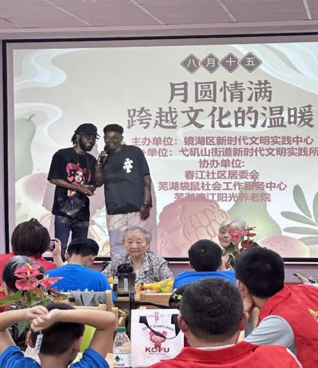 大家一边制作月饼,一边听老人分享传统的中秋习俗。留学生们也讲述了他们家乡在类似节日中的庆祝方式,让在场的人了解到不同国家的节日文化。儿童义工团的小成员们则围坐在老人身边,好奇地听着留学生们的讲述,时不时地提出天真的问题,不同文化在交流互动中相互交融。