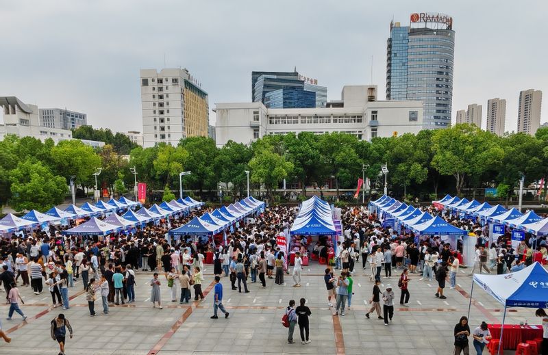 本网讯9月25日,2025届毕业生秋季首场校园大型双选会在图书综合楼广场举办。校党委副书记、校长卢平,校党委常委、副校长郑健深入一线指导毕业生就业工作。活动现场,应聘学子求职热情高涨,积极与企业代表沟通交流。
