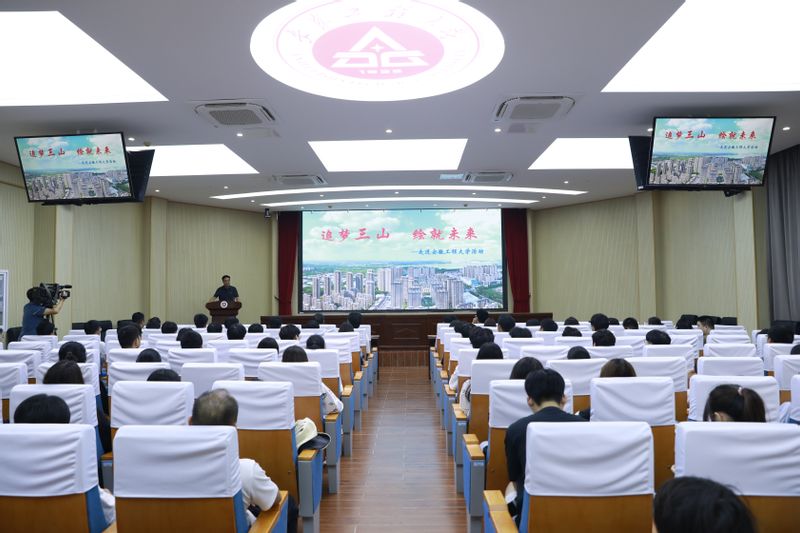 郑健代表学校致辞,他简要介绍了学校的发展历程和基本情况,特别是近年来在学科建设、人才培养、科技创新等方面取得的主要成果。他表示,学校在办学过程中,始终紧扣“地方特色高水平大学”定位,把服务支撑芜湖省域副中心城市建设作为重要政治任务、重要职责使命,做到与芜湖和各县区同向发展、双向赋能。
