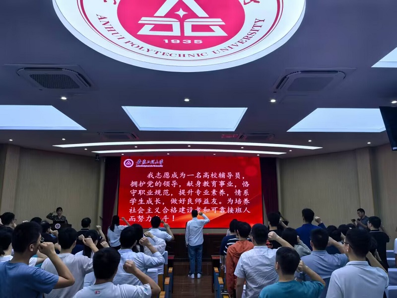 会上,举行了2024年新进辅导员入职仪式,由“2023年安徽省高校辅导员年度人物”获得者陈倩带领全体新入职辅导员进行入职宣誓,全体辅导员一同重温辅导员誓词,作出庄严承诺。新进辅导员代表人工智能学院范广伟作了入职交流发言,表示将坚定信念,扎根于学生的实际需求,真正做好教育工作,持续提升思想政治工作质量,为学校的发展贡献学工力量。