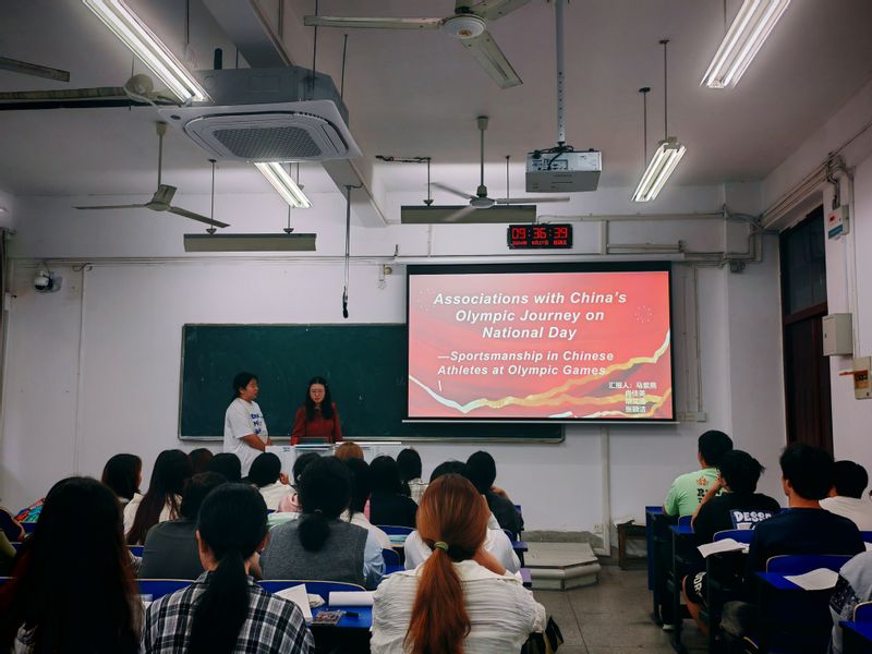 “我眼中的中国精神”,青年谈理想,英语口述榜样事迹凝聚奋进力量。英语专业的老师们将理想信念教育融入课堂教学,指导同学们从新中国取得的伟大成就中体会中国精神和榜样力量。有的同学骄傲地介绍了中国在2024年巴黎奥运会上取得的喜人成绩,谈到喜爱的运动员,他们认为爱国顽强、努力拼搏、为国争光的运动健儿才是我们该追的“星”。英语231班的马紫燕说,“中国百年奥运梦想的追求之路正是中国人民从‘站起来’‘富起来’到‘强起来’的历史缩影,镌刻着我们中华民族不畏艰险、攻坚克难、奋发图强的精神,必将激励着我们继续创造更加美好的未来。”