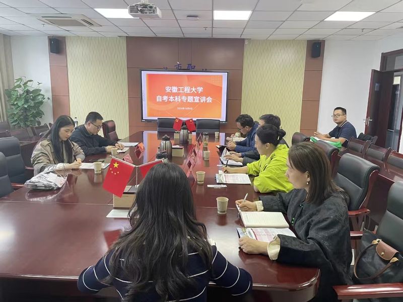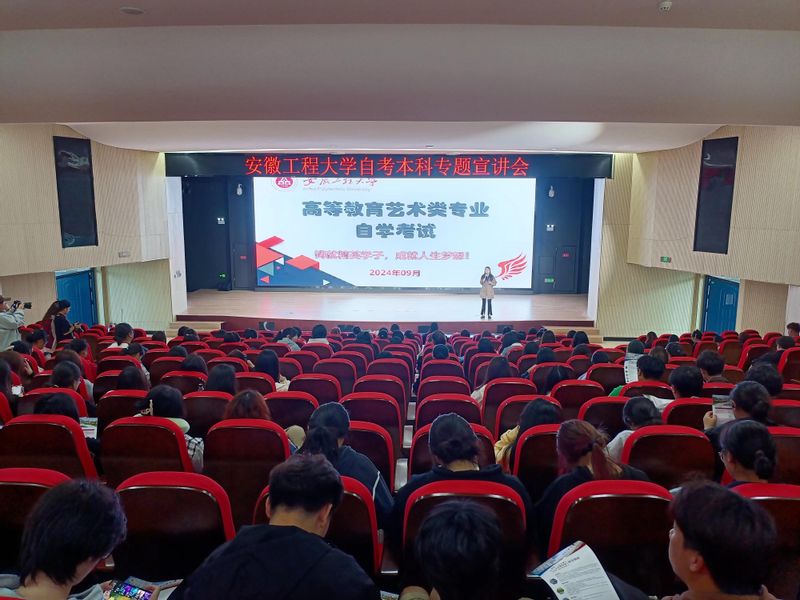 我校继续教育学院房宁宁老师作为宣讲人重点介绍了自学考试的基本情况、政策优势以及我校作为安徽省唯一艺术类专业主考院校的办学特色,让参会同学对自学考试有了基本的了解,使他们认识到自学考试是提升学历、实现个人更好发展的可靠途径,并通过列举自考优秀毕业生案例鼓励同学们积极进取,发奋拼搏,通过自学考试用学历提升实力,用知识改变命运。宣讲人还与参会同学进行了轻松愉快地互动,认真解答他们的提问,引导他们积极报考我校自学考试各专业。