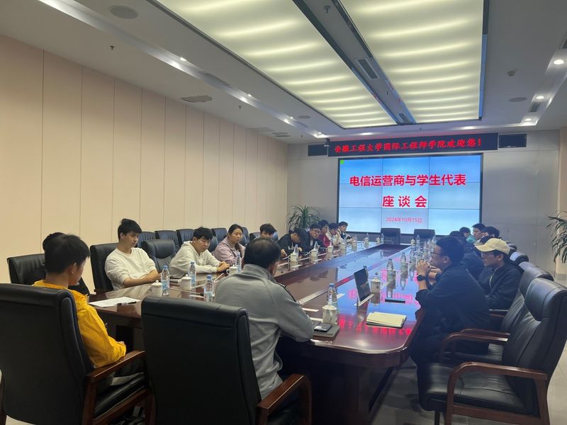 本网讯10月15日,国际工程师学院校区管委会在图文信息中心无纸化会议室召开电信运营商和学生代表座谈会,座谈会由信息科赵翔主持,综合办公室、芜湖移动、芜湖电信和芜湖联通三家电信运营商的客户经理和装维负责人、学生代表等23人参加。