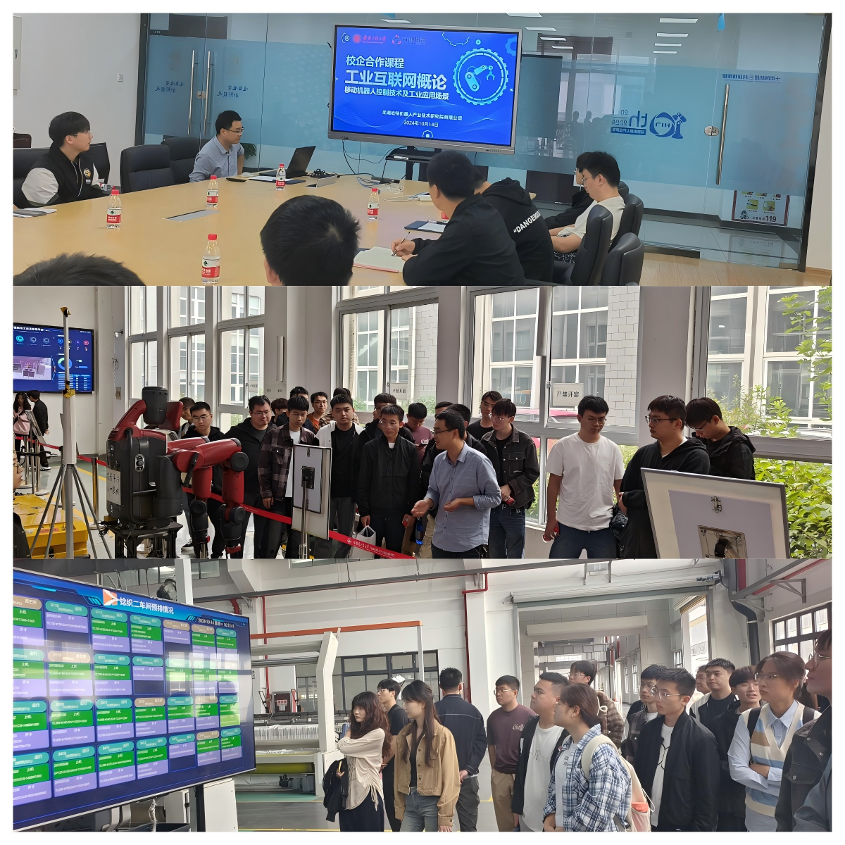 本网讯10月14日,计算机与信息学院物联网工程系“双带头人”教师党支部书记工作室联合芜湖哈特机器人产业技术研究院有限公司开展了“先进技术赋能传统产业转型升级”主题党日活动。物联网工程系教师党支部和研究生第二党支部部分师生党员、工业互联网概论(校企合作)1班学员赴芜湖哈特公司参加了活动,副院长刘涛、芜湖哈特总经理曹雏清出席。活动由校“双带头人”教师党支部书记工作室负责人章平主持。