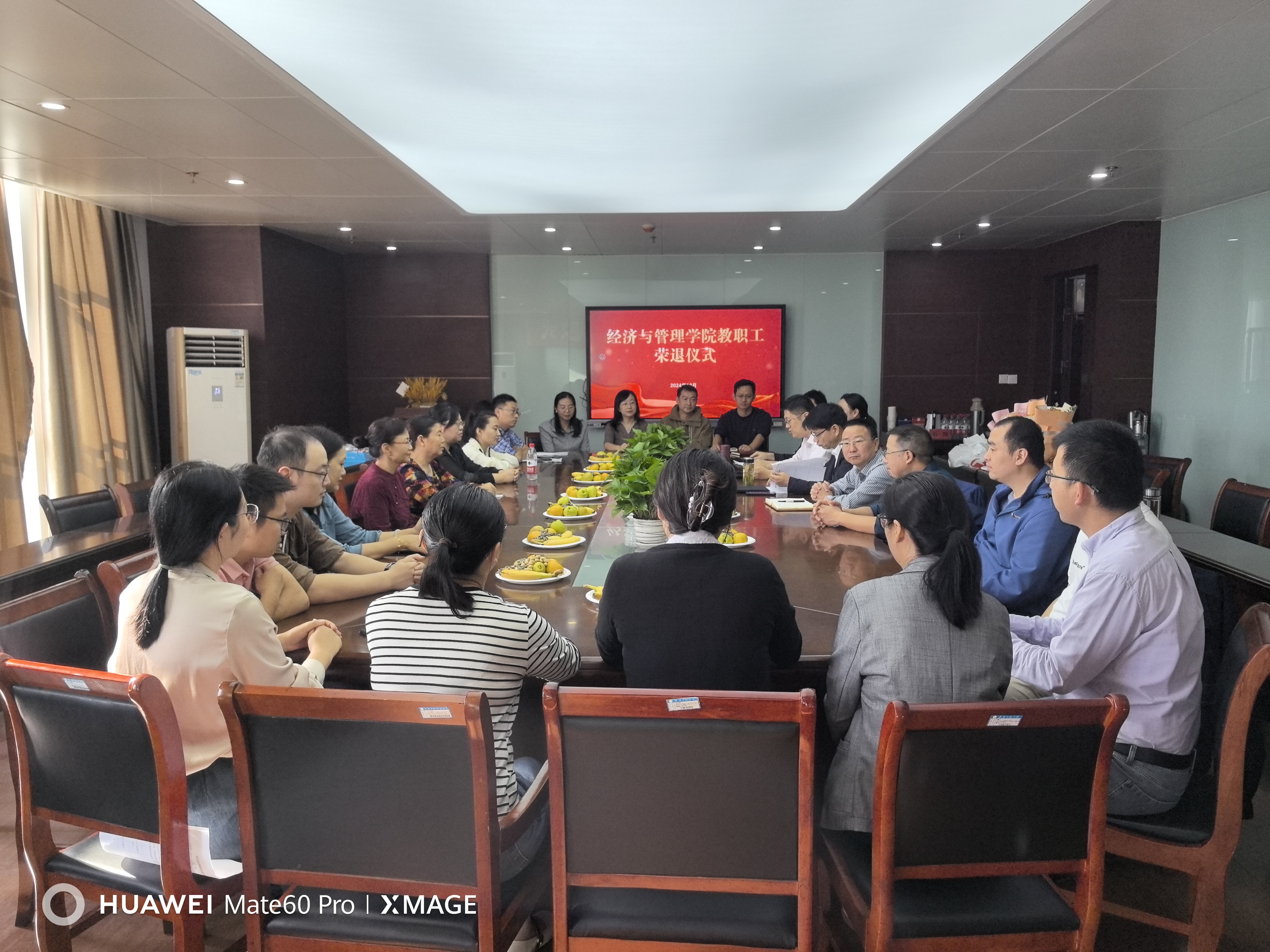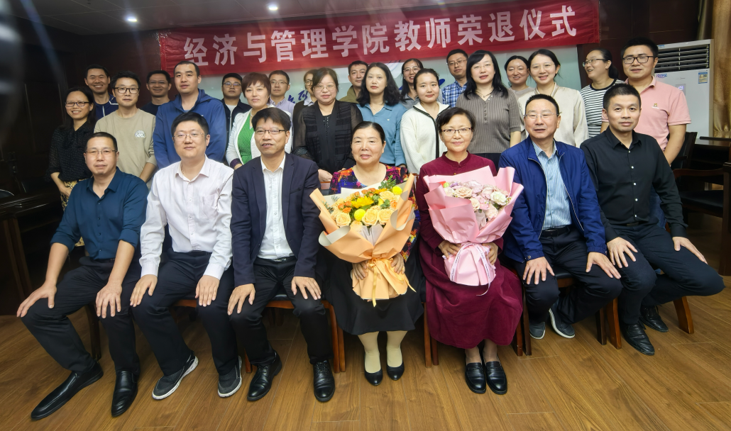 学院领导为退休教师献上鲜花,并合影留念。荣退仪式在温情满满的氛围中结束。