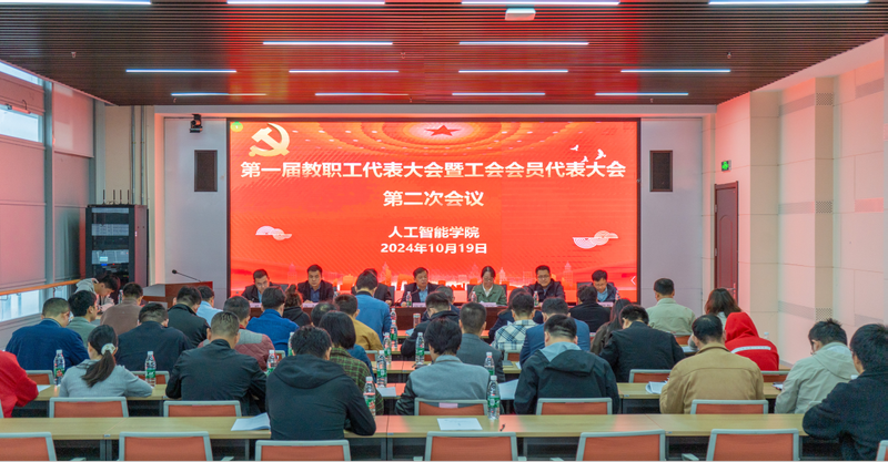 大会正式会议在庄严的国歌声中拉开帷幕。会议的第一阶段,全体代表听取学院副院长江本赤代表学院行政作题为《群策群力谋发展,同心同德绘蓝图为开创学院改革发展新局面而努力奋斗》的学院工作报告。参会代表书面审议了《工会工作报告》《人工智能学院专任教师公共事务年度考核实施细则(试行)》《人工智能学院本科教学工作量核算办法(试行)》《人工智能学院教师教学质量考核实施细则(试行)》《人工智能学院本科生导师管理实施细则(试行)》。