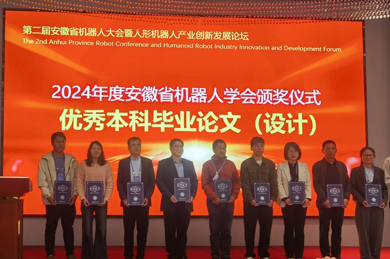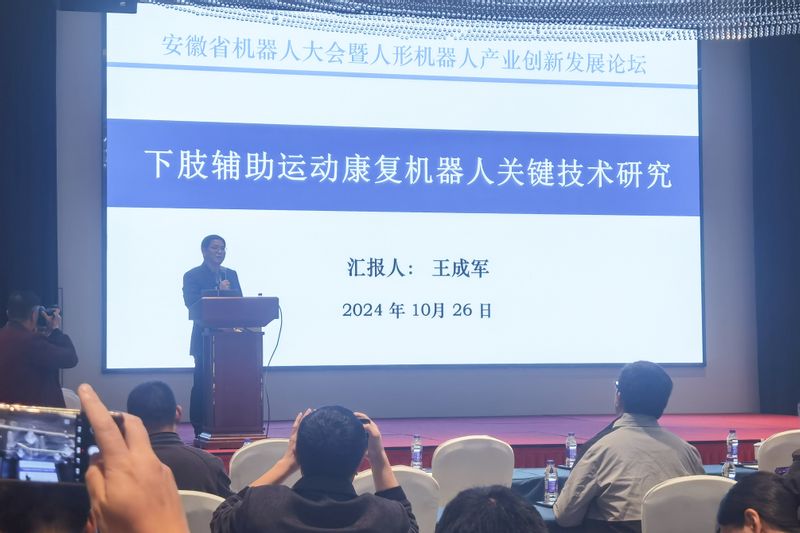 本届安徽省机器人大会以人形机器人产业创新为主题,主要交流近年来人形机器人技术创新成果及产业布局问题,研讨我省助力人形机器人发展新举措,探索产学研合作新途径。王成军作题为“下肢辅助运动康复机器人关键技术研究”的学术报告,介绍了围绕康复机器人所开展的科技创新成果及研究生培养工作成效,并回答了参会代表围绕康复机器人的现场提问。在会前举行的机器人学会颁奖环节,王成军教授荣获优秀本科毕业论文指导教师。