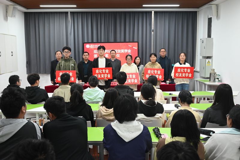 傅应强宣读了《2024年“应化02校友奖学金”获奖学生名单》。余晨辉、冯晓玲为获奖学生颁奖,并合影留念。应化232许兆东作为获奖学生代表发言,他表达了对学校辛勤培育和校友关心关怀的感激之情,并立志以校友们为前行标杆,更加努力学习,不断提升自我,成为一名对社会、国家发展有用的栋梁之才。