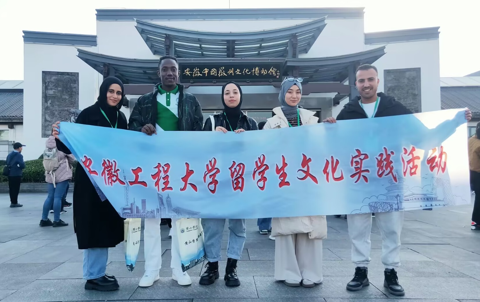 此次活动旨在深入学习贯彻党的二十届三中全会和全国教育大会精神,推动安徽教育国际化进程,让外国留学生亲身体验徽文化的深厚底蕴。来自包括我校在内的21所安徽省高校的留学生代表和老师共聚黄山,展开了丰富多彩的文化修学活动。活动期间,留学生们参观了徽州文化博物馆和城市展览馆,深入了解了徽州文化的起源、发展和传承。他们还在历史悠久的屯溪老街漫步,品尝当地美食,感受徽派建筑的独特魅力。