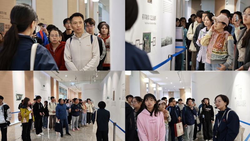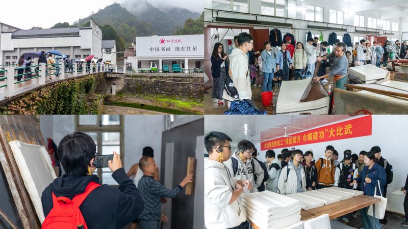 走进542厂,见证匠心工艺。师生来到国家级保密重点单位、国家首批工业文化专题实践教学基地、安徽省文物保护单位——中国宣纸股份有限公司542厂,大家近距离目睹了宣纸制作的精细流程,从捞纸、晒纸,再到剪纸,每一个环节都展现了宣纸文化的深厚底蕴和精湛工艺。宣纸师傅们熟练的手法和专注的神情,让在场师生读懂了他们于“水深”“火热”中的坚守与追求,对这传承千年的技艺又有了更深刻的认识。