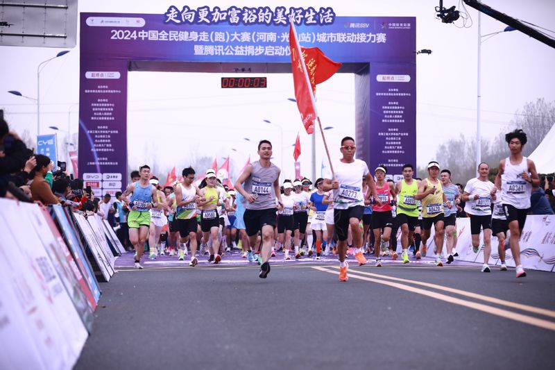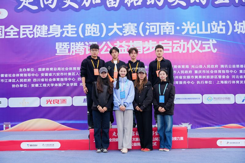 本网讯10月27日,2024年中国全民健身走(跑)大赛城市联动接力赛在风景秀丽的河南光山县举行。我校体育学院4名研究生和4名本科生在体育学院体验产业学院设计中心主任张华老师的带领下,代表我校全程参与赛事组织工作。