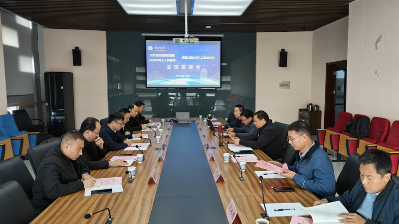 本网讯10月29日,安徽省皖南康复医院(芜湖市第五人民医院)副院长徐茂奇、胡剑辉等六人前来人工智能学院开展合作交流。学院领导班子及相关专业教师参加了座谈交流,会议由人工智能学院党委书记任家钱主持。