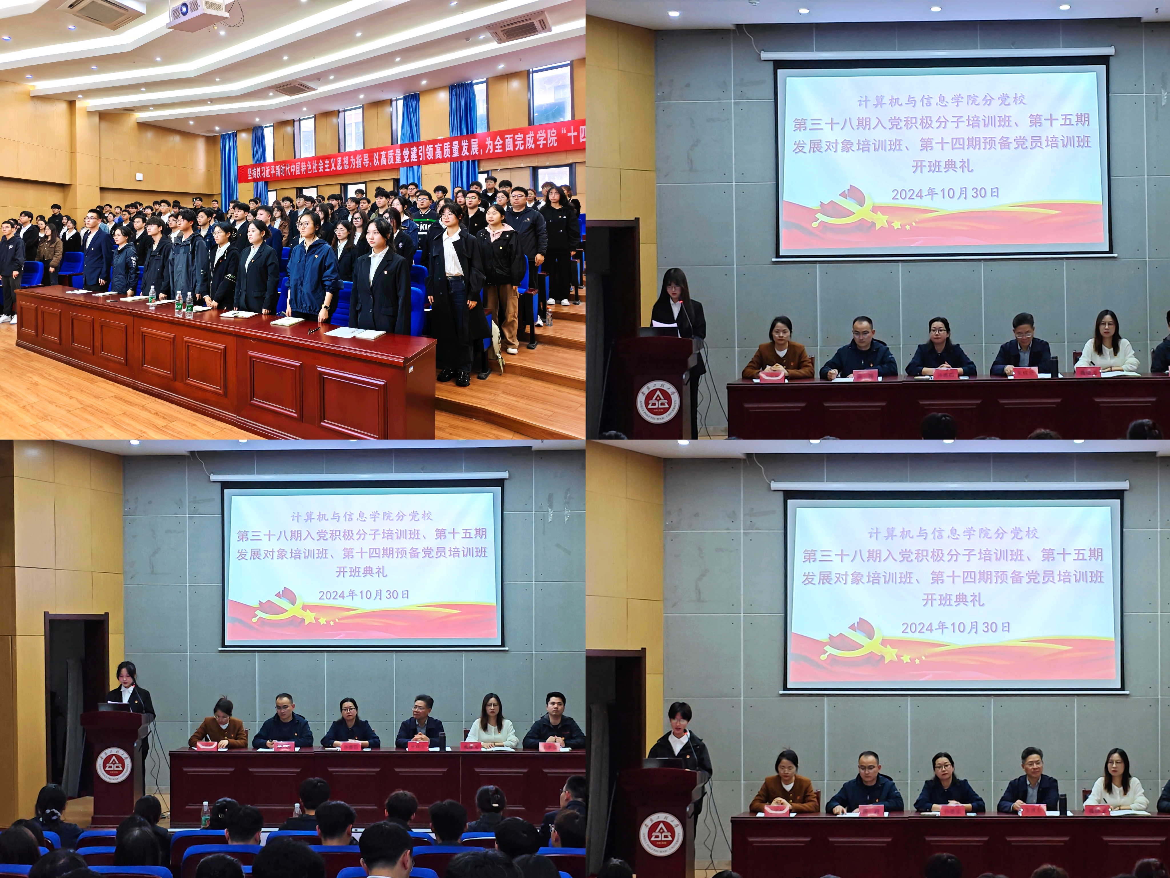 本网讯 为加强对入党积极分子、发展对象和预备党员的教育培养,强化学员党性修养,提升政治理论素养,10月30日,计算机与信息学院分党校举行本学期党校培训班开班典礼。校第三督导组成员朱成全、院党委副书记孙德茹、培训班班主任以及全体学员参加典礼,典礼由周芳婷主持。