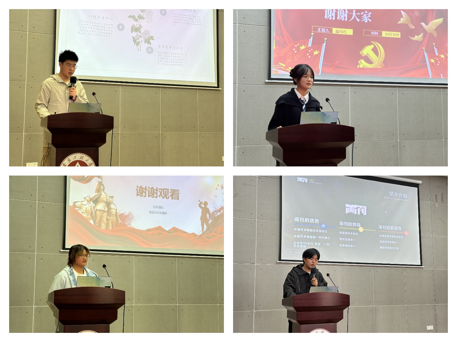 本届大赛历时一个月,分为初赛、决赛两个阶段。初赛共收到48组参赛作品,根据专业评委评分,共有12支队伍进入决赛进行现场展示。经过激烈角逐,作品《中国·舞狮魂》荣获一等奖,作品《〈画刊〉数字活化方案》《红色印记》荣获二等奖,《基于智能体的中国工笔人物画教学辅助系统》《每时美食》《旅游推荐》获得三等奖,其中,《红色印记》获最佳创意奖,《中国·舞狮魂》获最佳美工奖。