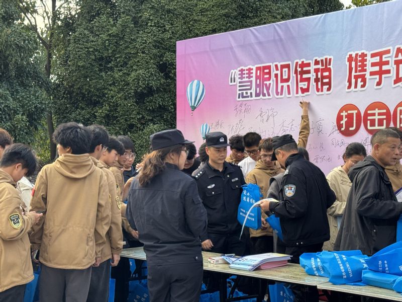 本网讯为进一步提高在校大学生反诈防传销意识,全力保护学生财产安全,有效预防和减少校园传销案件的发生。11月1日,官陡街道打击传销专班、鸠江区公安分局经侦大队、神东社区会同保卫处、学生处在“一站式”学生社区总站为我校学生开展了一场别开生面的防范传销进校园宣传教育活动,全力护航大学生健康成长。