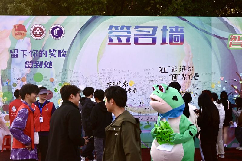 共赴游戏之约,畅享社团趣味。本次社团文化节精心设计了12个寓教于乐的体验游戏,将现场活动气氛不断推向高潮。孤独症协会的“星星寄语”充满温情,演讲与口才协会的“即兴辩论”现场气氛热烈,槿樱动漫社的“盖了个章”游戏趣味十足......活动现场还设立了手绘签名墙,同学们纷纷在签名墙上写下自己的名字、祝福或是对未来的憧憬,记录下这美好的瞬间。