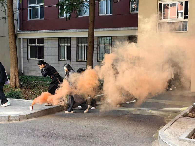在消防演练时,研究生们迅速反应,按照预定的疏散路线,用湿毛巾捂住口鼻,低姿弯腰有序地从宿舍撤离到安全地带。整个疏散过程紧张而有序,用时仅几分钟,充分体现了研究生们良好的消防安全素养。