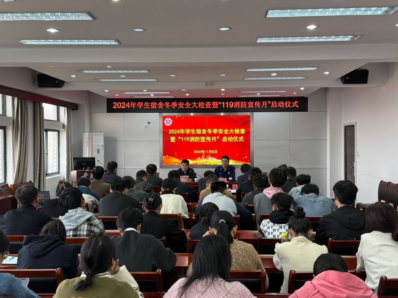 启动仪式上,学生处处长黄炜作2024年学生宿舍冬季安全大检查动员讲话,保卫处处长文才新作“119消防宣传月”动员讲话。
