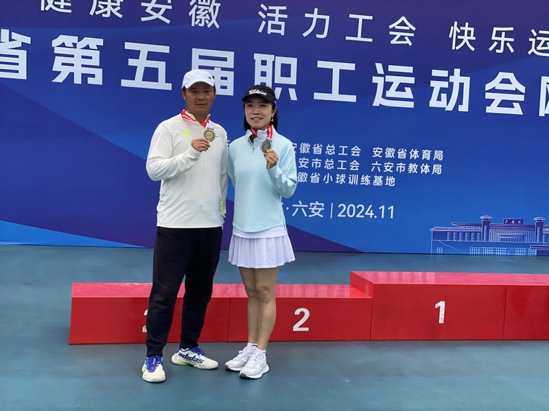 本次网球比赛分为青年组和中年组两个年龄段,分别有男子双打、女子双打、混合双打三个小项,比赛共持续3天时间,采用循环赛和淘汰赛决出名次。比赛场上,运动员们在场上尽情挥拍、挥洒汗水,既是技术的较量,也是意志的比拼。这场运动会不仅是一场竞技,更是一次对职工精神风貌和团队协作精神的展现。本次比赛安徽省教科文卫体代表队共获得了4个亚军,3个季军的优异成绩,其中我校王红涛老师和安徽医科大学选手配对获得中年混双亚军,张红老师、潘文杰老师组合,张寅红老师、吴月红老师组合分别荣获中年女双亚军和季军。