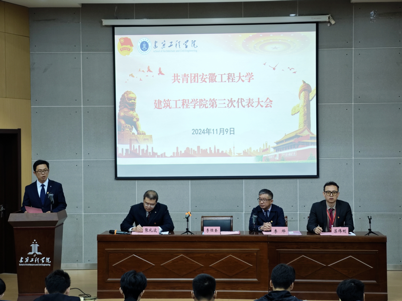 本网讯11月9日,共青团建筑工程学院在C座3楼报告厅召开第三次代表大会,进行换届选举。校团委书记李恒奎、院党委书记李烨、副书记张礼波、第二届委员会成员、全体辅导员、正式代表、列席代表出席。会议开幕式由张礼波主持。