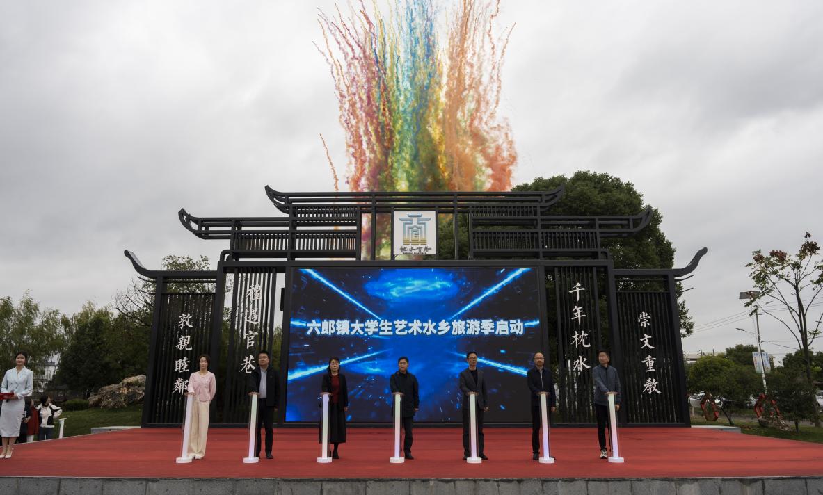 本网讯11月17日,由我校与湾沚区人民政府共同主办的六郎艺术水乡大学生旅游季在六郎艺术水乡旅游度假区官巷游客中心广场启动。湾沚区委常委、宣传部部长单增劲出席活动并致辞,校团委、纺织服装学院相关负责人应邀参加。