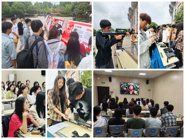 举办国防展览,厚植爱国情怀。在“一站式”学生社区青年广场,通过海报、电影展示我国国防建设成就、军事历史和英雄模范事迹。先后在两个校区组织300余名学生观看了国防教育影片《建党伟业》和《冲出亚马逊》,让同学们直观认识到国防的重要性,知晓国防安全是每个人的责任,激发同学们积极参与国防建设的热情。以“沉浸式”的体验方式向同学们普及国防知识,潜移默化中培养同学们的家国情怀和责任感。