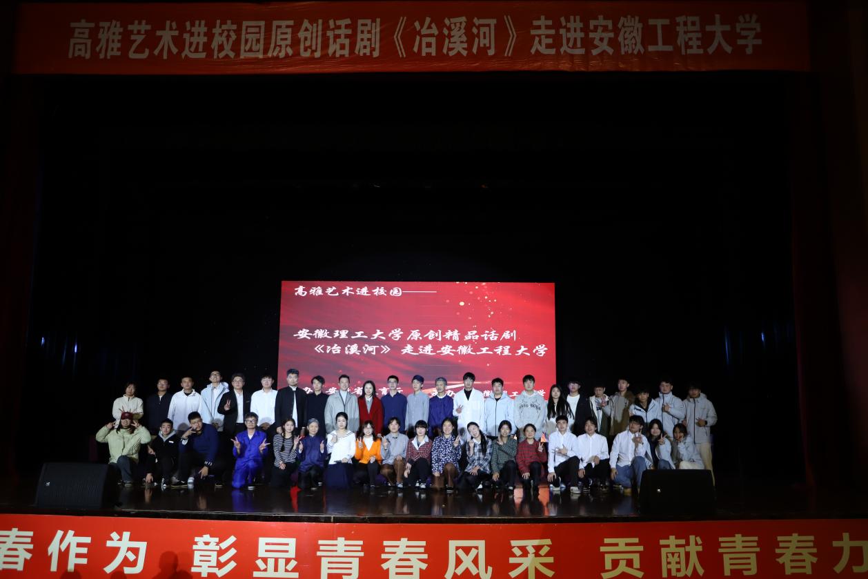 本网讯11月21日,由安徽省教育厅主办、安徽理工大学承演的“高雅艺术进校园”原创话剧《冶溪河》在大学生师生活动中心演出,近900名师生观看演出。