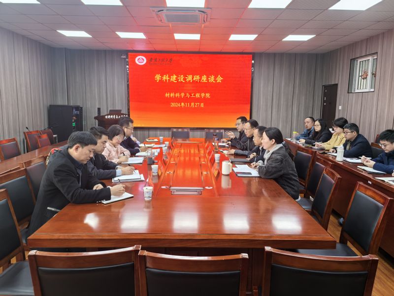 会上,学院院长左如忠汇报了学科建设的基本情况,分析推进材料学科建设过程中存在的问题与挑战。各职能部门负责人就学科建设发展的具体问题进行回应,并为学院的建设和发展提出中肯的意见建议。学院党委书记郭广春就研究落实调研座谈会提出的意见建议表态发言。