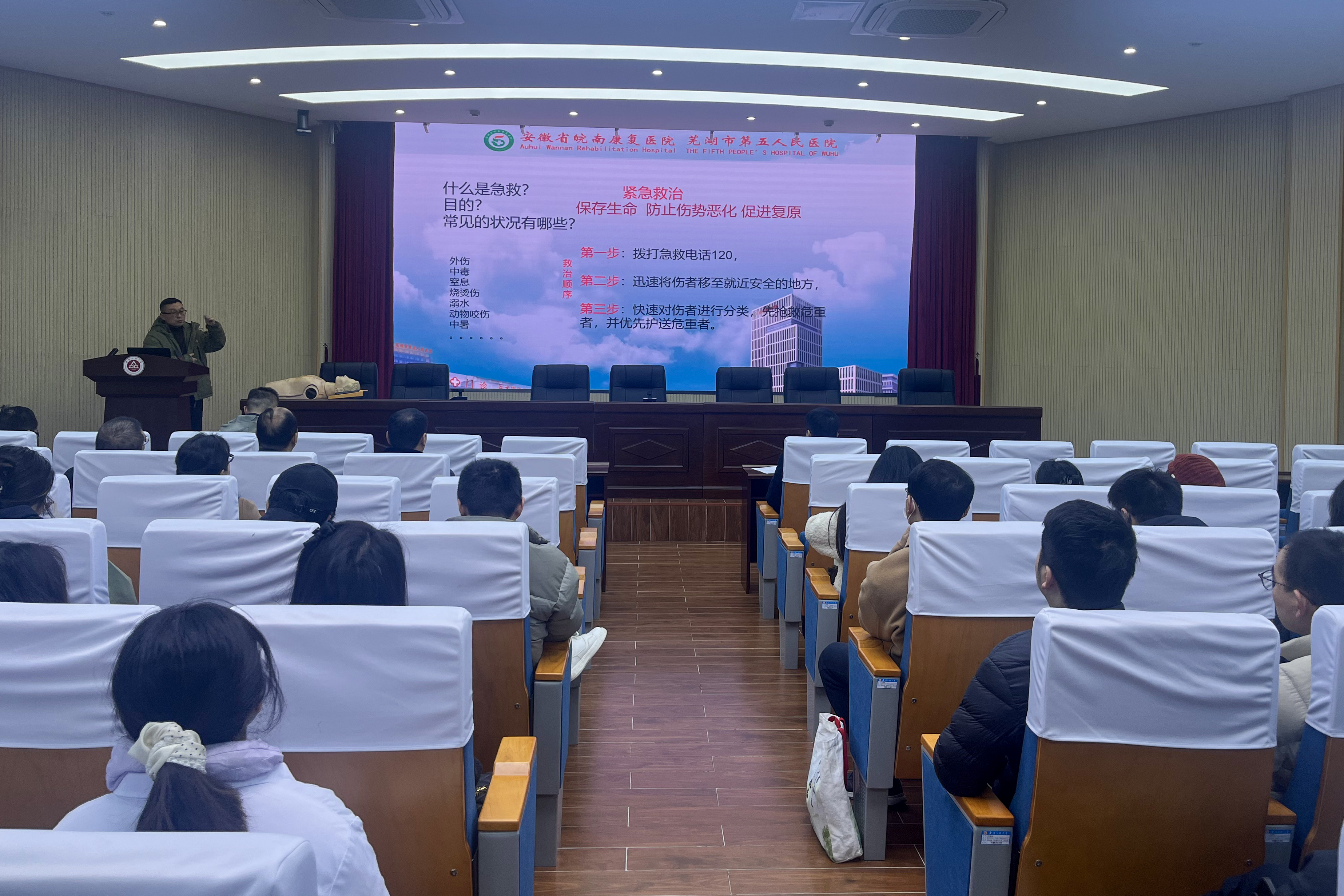 论坛邀请了芜湖市第五人民医院副主任医师、院前急救科主任侯捷开展常见急救知识培训,他采用理论讲解与实操演示相结合的方式,详细介绍了心肺复苏术、自动体外除颤器的使用、海姆立克急救法、烫伤创伤等急救知识,使参训人员对急救技能有了更直观的认识和掌握,增强了辅导员应急救护知识和技能,提升其在突发事件中的应急救护意识和自救互救能力。学生处国防教育科赵成婧作2025届毕业生征兵工作业务培训,详细解读应征入伍的基本条件、参军的基本流程、入伍政策,激励更多大学生踊跃参军入伍。后勤保障处副处长高潮交流了学校膳食管理工作,指出我校创新性开展食堂成本核算及毛利率控制工作,让同学们花同样的钱吃得最好,吃同样的饭花得最少,让学生吃得值、吃得好、吃得安全。