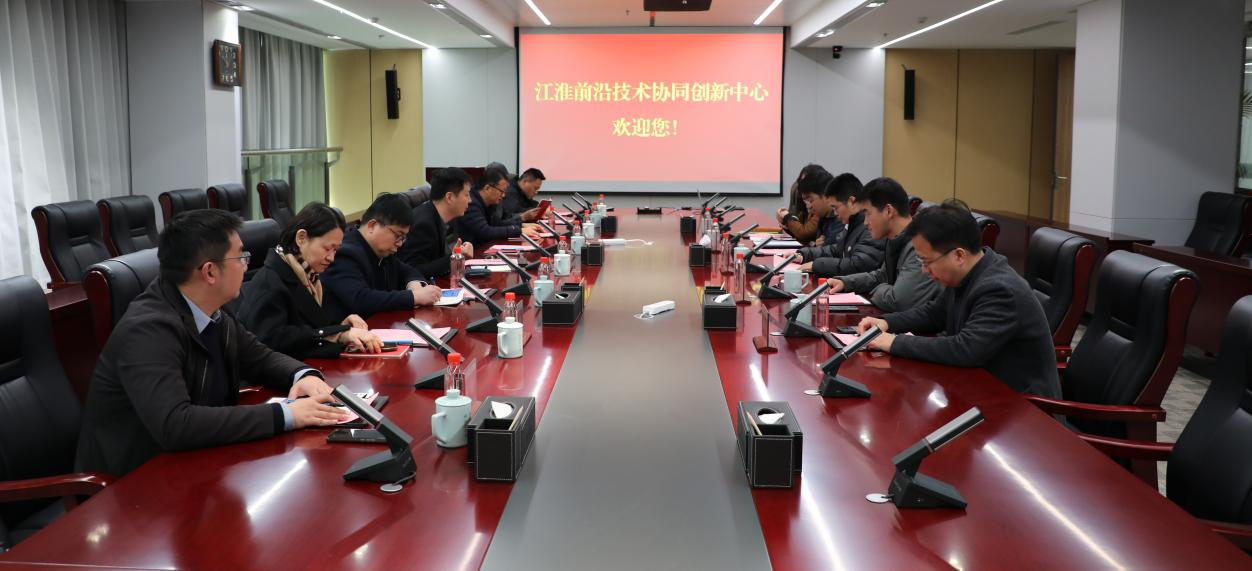本网讯为深入学习贯彻习近平总书记考察安徽重要讲话精神,进一步加强与高能级研究机构的交流合作,11月27日,校党委常委、副校长凤权带队赴江淮前沿技术协同创新中心开展合作洽谈,江淮中心副主任刘厚德、江淮中心各研究院负责人,学校科技处、社会合作处、人工智能学院等相关部门负责人参加合作洽谈。鸠江区科技局负责人参会并作工作交流。