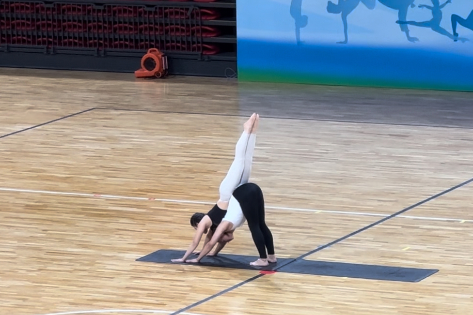 我校瑜伽队首次代表学校参与全国性赛事。队员在学院和教练陈智老师的关心和指导下坚持刻苦训练,与各专业院校队员赛场争锋。队员黄婧雯和胡媛媛在丙组女子双人比赛中脱颖而出,取得第一名的优异成绩;队员沈文静和陈俊杰在丙组混合双人比赛中取得第四名的好成绩。